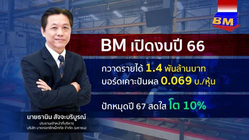 BM มาตามนัด! ปี 66 รายได้ทะลุ 1.4 พันล้านบาท โต 9.59%