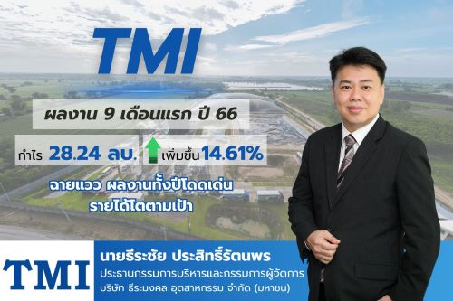 TMI ปิดงบ 9 เดือนปี 66 กำไรพุ่ง 15% แตะ 28 ล้านบาทส่งซิกไตรมาส 4/66 เติบโตโดดเด่น