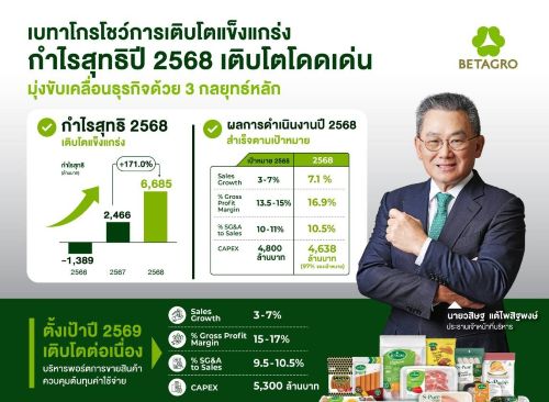เบทาโกรโชว์งบปี 68 กำไรพุ่ง 171.0% มาร์จิ้นเติบโต-การปรับพอร์ต หนุนผลตอบแทนแกร่ง
