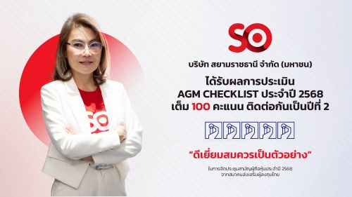 SO ปลื้ม! คว้า 100 คะแนนเต็ม AGM Checklist ต่อเนื่องเป็นปีที่ 2ตอกย้ำมาตรฐานกำกับดูแลกิจการที่ดี