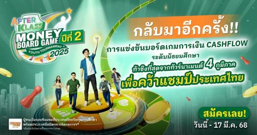 AFTERKLASS จัดแข่งขันบอร์ดเกมการเงิน CASHFLOW ระดับมัธยม ปี 2 เปิดรับสมัครแล้วตั้งแต่วันนี้ – 17 มี.ค.68