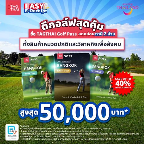 TAGTHAi เปิดตัว 3 Golf Pass พิเศษ ชวนคอกอล์ฟออกรอบโชว์วงสวิง พร้อมรับภาษีคืนตามสิทธิ์ Easy E-Receipt
