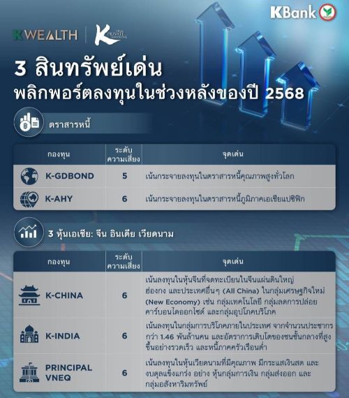 KBank Private Banking แนะจับตา 3 สินทรัพย์เด่น พลิกพอร์ตลงทุนในช่วงหลังของปี 2568