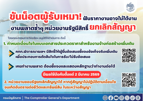 ขันน็อตผู้รับเหมา! ฟันราคางานอาจไม่ได้งานงานพลาดซ้ำ ๆ หน่วยงานรัฐมีสิทธิ์ยกเลิกสัญญา