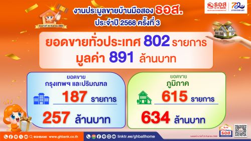 บ้านมือสองโดนใจ !! ธอส. ช่วยคนไทยมีบ้าน ลูกค้าประมูลทรัพย์มือสองทั่วประเทศได้กว่า 800 รายการ มูลค่ารวม 891 ล้านบาท