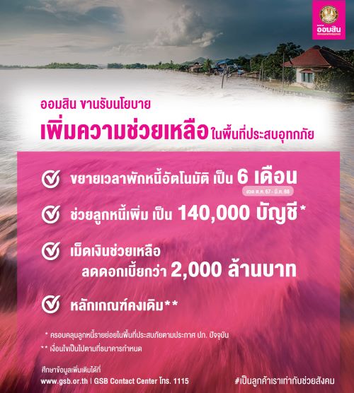 ออมสิน ช่วยลูกหนี้รับมือน้ำท่วมซ้ำเติมอีกระลอก ให้ขยายเวลาพักหนี้ออโต้จาก 3 เดือน เป็น 6 เดือน
