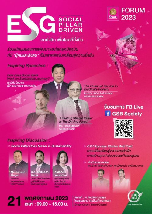 ออมสินจัด GSB Forum 2023 หัวข้อ ESG : Social Pillar Driven “คนยั่งยืน เพื่อโลกที่ยั่งยืน”