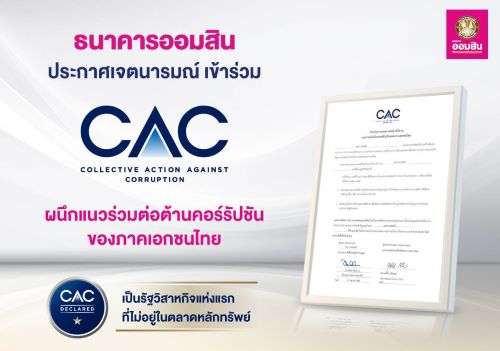 ออมสิน ประกาศเจตนารมณ์ ร่วม CAC ผนึกแนวร่วมต่อต้านคอร์รัปชันของภาคเอกชนไทย