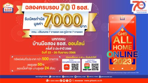 ธอส. ฉลองครบรอบ 70 ปี จองซื้อบ้านในงาน GHB ALL HOME ONLINE 2023