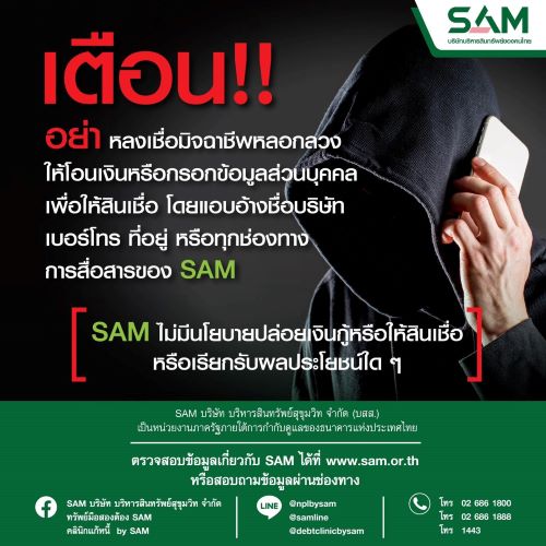 SAM แฉกลโกงมิจฉาชีพแอบอ้างเป็น SAM หลากหลายรูปแบบ เตือนภัยประชาชน อย่าหลงเชื่อ