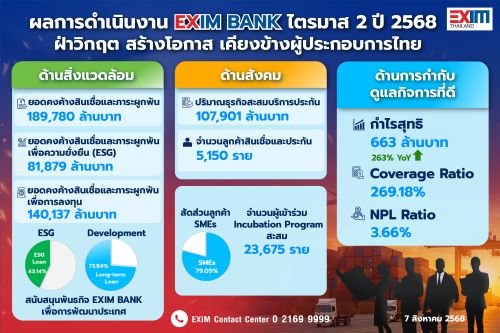 EXIM BANK แถลงผลการดำเนินงานไตรมาส 2 ปี 2568 ฝ่าวิกฤต สร้างโอกาส เคียงข้างผู้ประกอบการไทย