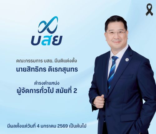 คณะกรรมการ บสย. มีมติแต่งตั้ง “สิทธิกร ดิเรกสุนทร” ดำรงตำแหน่ง “ผู้จัดการทั่วไป” สมัยที่ 2 มีผลตั้งแต่ 4 ม.ค. 2569