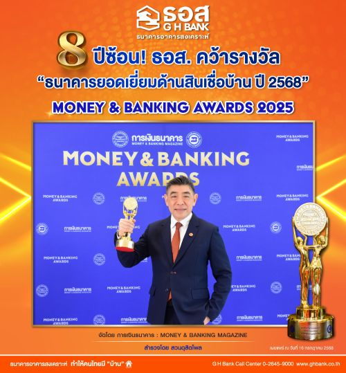 8 ปีซ้อน! ธอส. คว้ารางวัล “ธนาคารยอดเยี่ยมด้านสินเชื่อบ้าน ปี 2568”