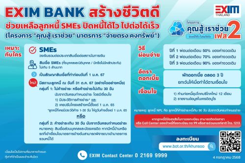EXIM BANK ผนึกกำลังภาครัฐ ช่วยลูกหนี้กลุ่มเปราะบางฝ่าวิกฤตเศรษฐกิจ ผ่านโครงการ “คุณสู้ เราช่วย เฟส 2”